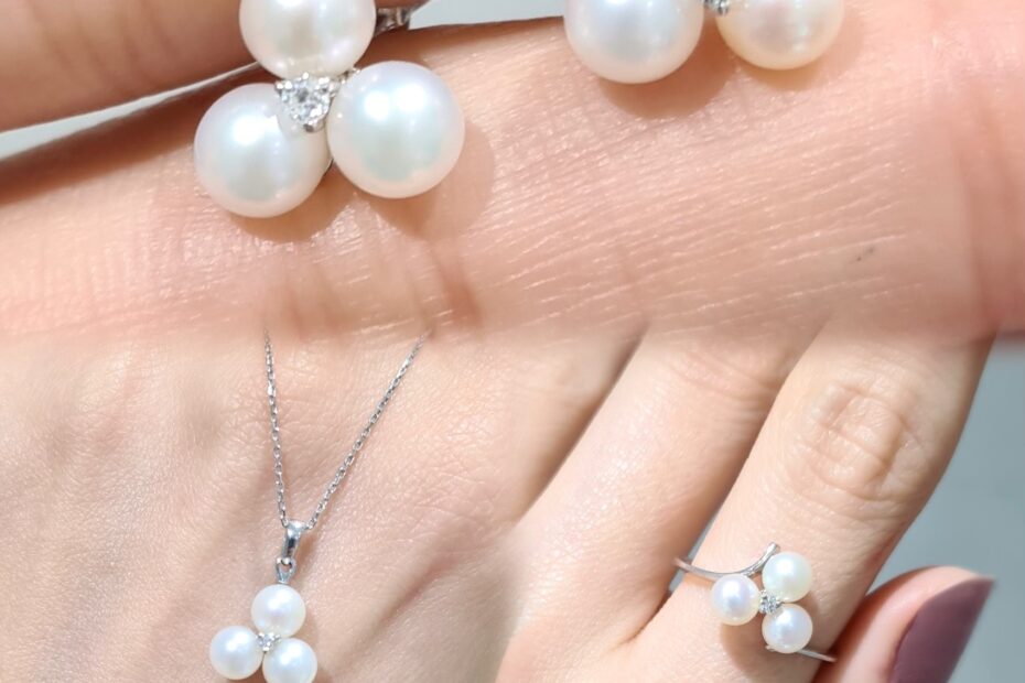 2. El 0,08 Karat Pırlantalı Tria İncili Kolye, Küpe, Yüzük Set