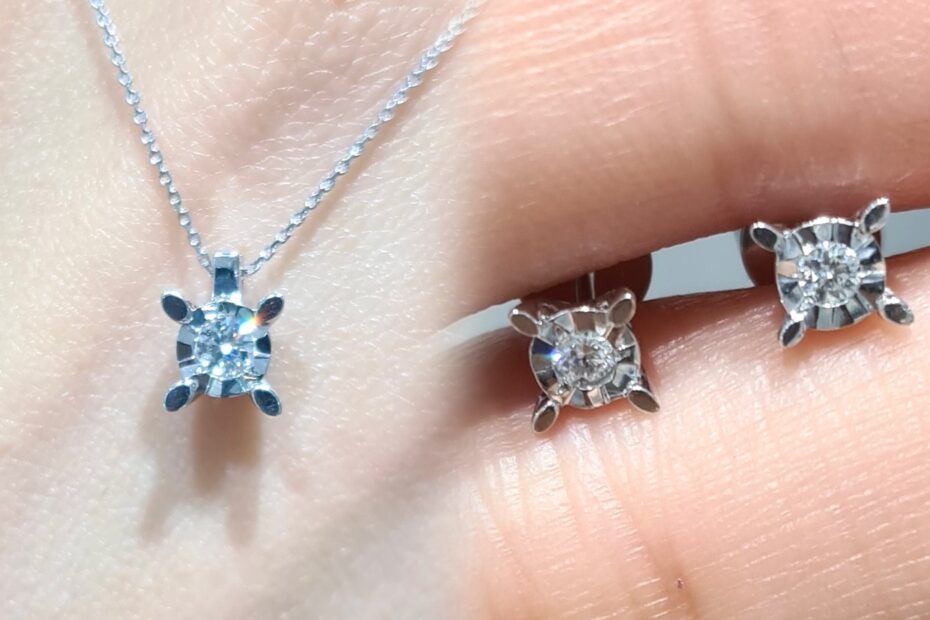 2. El 0,17 Karat Efektli Pırlanta Tektaş Kolye ve Küpe Set