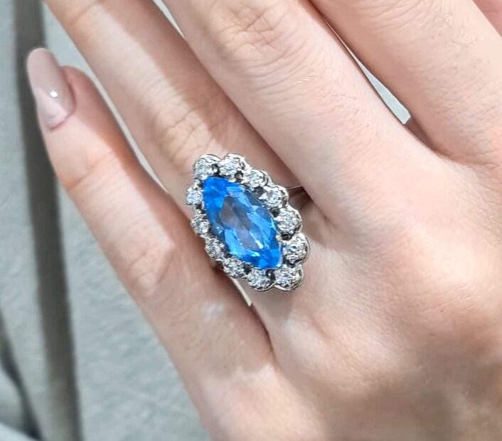 2. El 5,13 Karat Pırlanta ve Blue Topaz Tasarım Mekik Yüzük