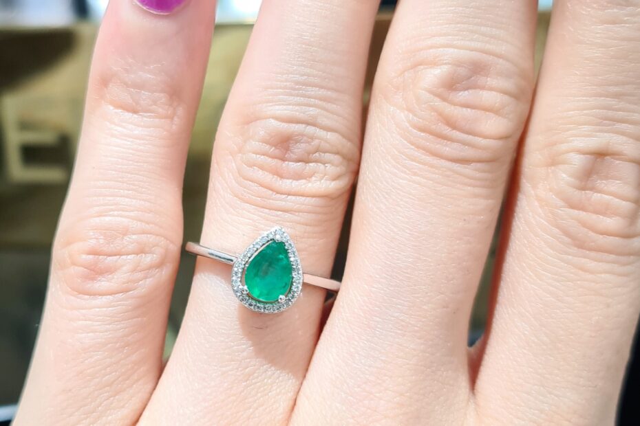 2. El 0,51 Karat Pırlanta ve Zümrüt Damla Yüzük