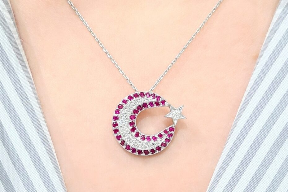 2. El 0,67 Karat Pırlanta ve Pembe Safir Ay Yıldız Kolye