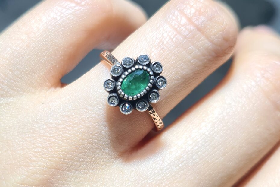 2. El 0,58 Karat Elmas ve Zümrüt Yüzük