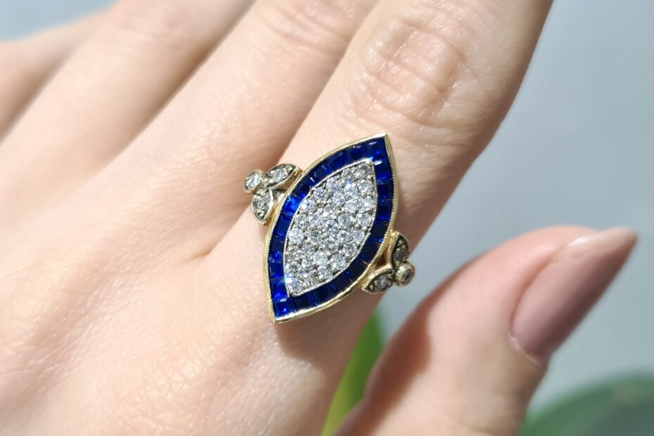 2. El 1,95 Karat Pırlanta ve Safir Tasarım Mekik Yüzük
