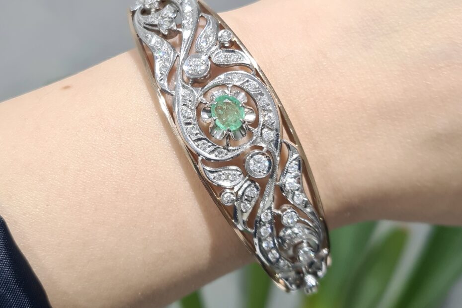 2. El 1,90 Karat Pırlanta ve Zümrüt Otantik Tasarım Kelepçe Bileklik