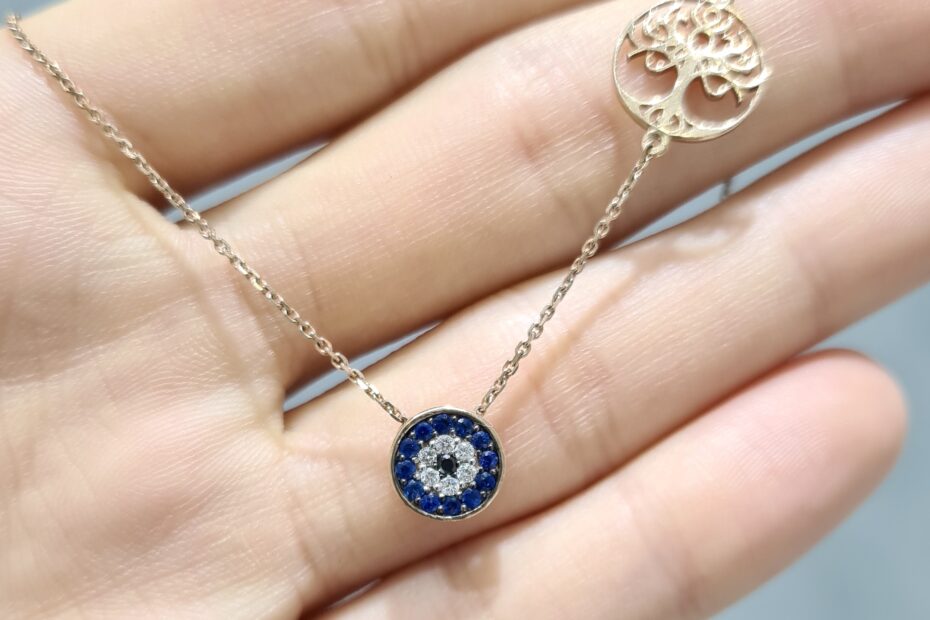 2. El 0,26 Karat Pırlanta ve Safir Nazar Boncuklu Zarif Kolye