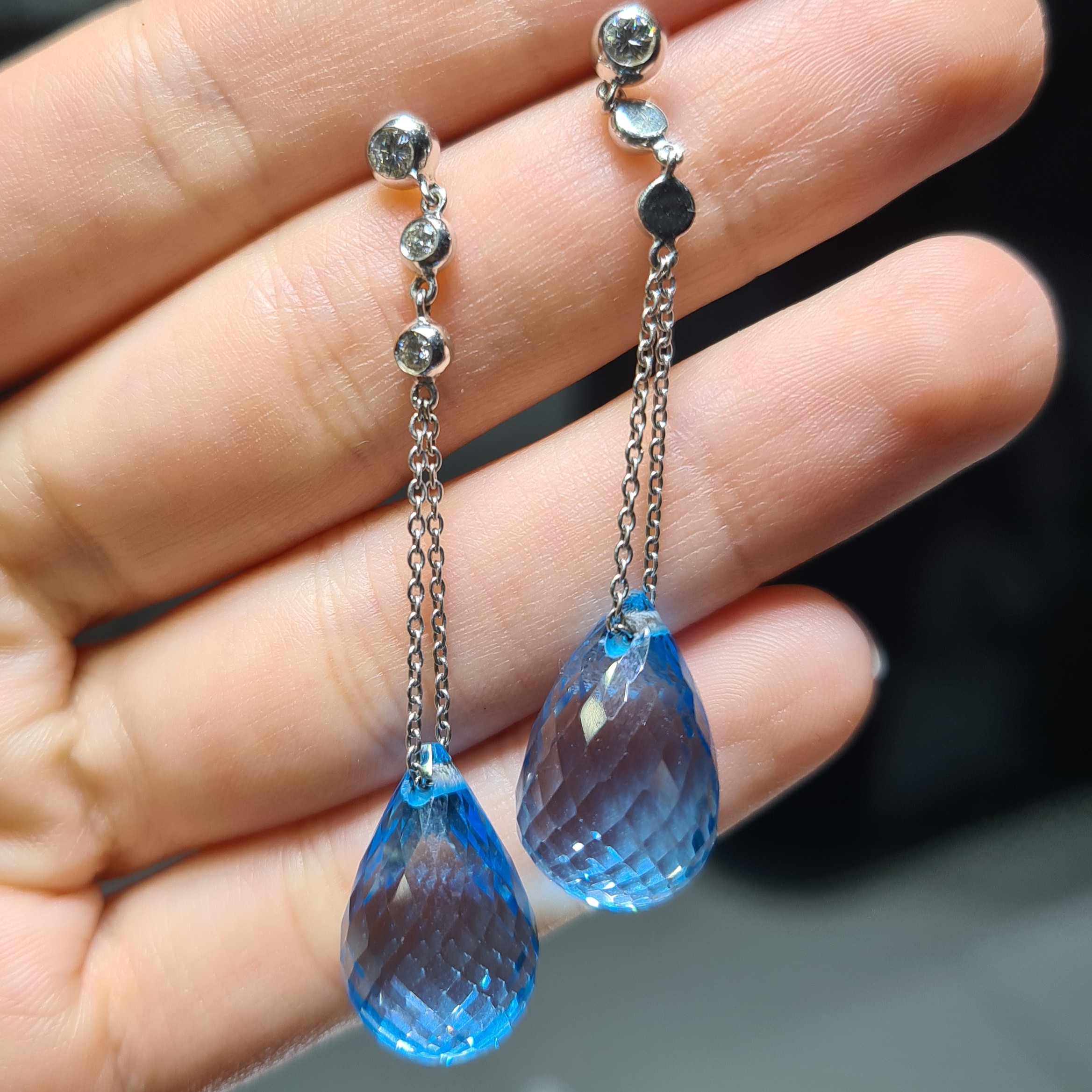2.El Pırlanta 0,15 Karat Blue Topaz Küpe
